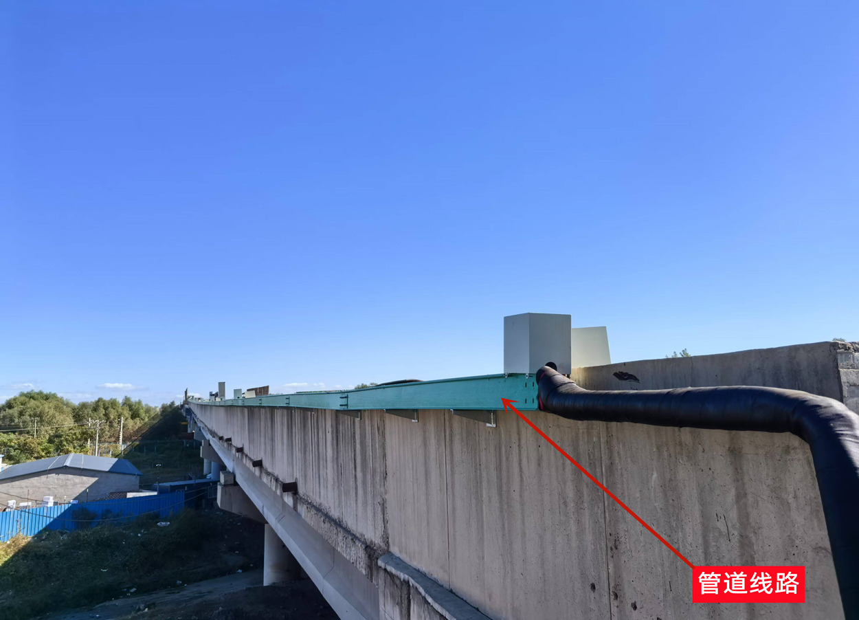 后丁香大桥(下行)位于沈阳绕城高速K8+794公里处(中心桩号),建成于2013年,桥梁全长2830.81m;桥面净宽为18.75m。冬季桥面易结冰,且事故多发。为确保冬季高速公路的安全运营,保障出行安全,“桥面凝冰预警及自动化处置系统”于2024年10月在后丁香大桥(大连方向、下行)安装应用。