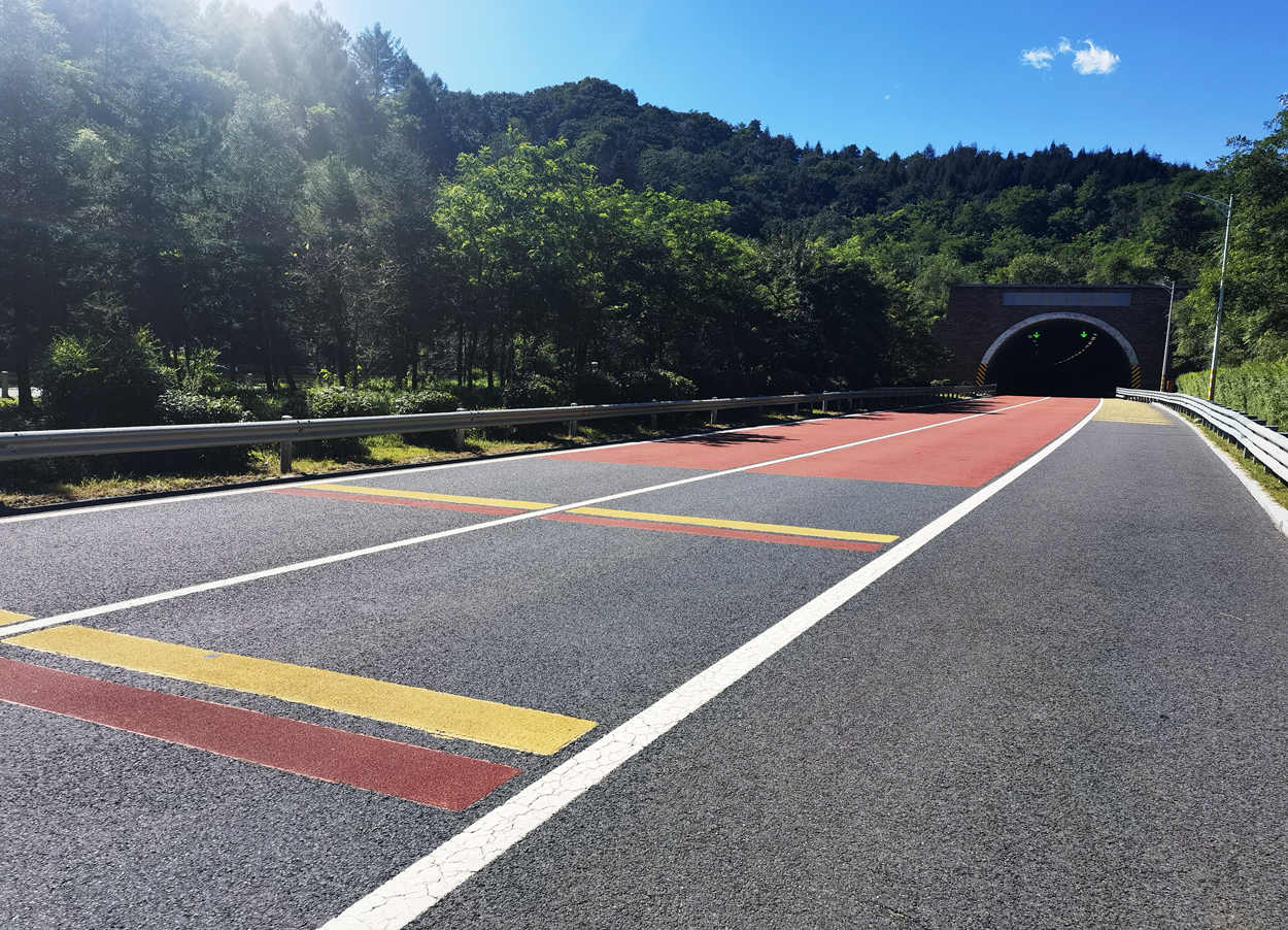 彩色聚氨酯抗滑耐磨薄层已在辽宁、吉林、黑龙江三省高速公路收费站ETC车道、隧道进出口、弯道桥以及景区步道等彩色路面铺装工程中推广使用32.6万平米。