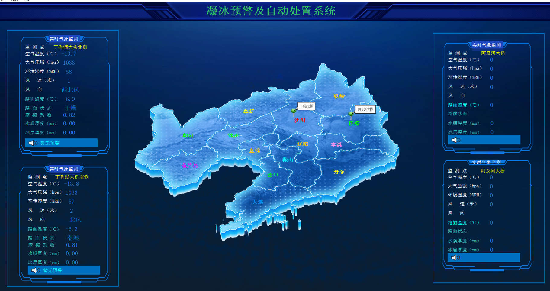 桥面凝冰预警及自动化处置系统是为应对冰雪灾害、精确预测结冰时间、提前处置,将“除冰”变成“防冰”,并基于物联网技术的一种桥面凝冰自动化处置系统。该系统由交通气象预警预报系统、自动化控制系统及喷洒系统组成。